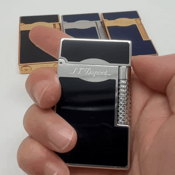 Discover refined craftsmanship with this S.T. Dupont dial wheel lighter. The black lacquer finish paired with gold and silver detailing exudes timeless luxury. Its precision-engineered ignition wheel delivers a smooth and consistent flame, while the iconic “cling” sound on opening highlights its authentic Dupont heritage. A perfect addition to any premium collection or a distinguished gift for aficionados of fine accessories.