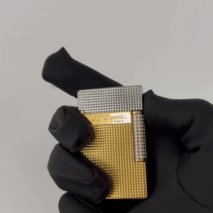 Celebrate 150 years of S.T. Dupont with the Ligne 2 Golden Hour Lighter. The lighter features a ‘Diamondhead’ finish which is a series of engraved Parisian diamond pattern throughout the body of the lighter, while the fully diamond-set roller adds undeniable brilliance. Made of solid brass, the finish features a tri-color design (Palladium, Rose Gold and Gold) which symbolizes love, friendship, and loyalty. The lighter has signature S.T. Dupont “ping” sound and has an adjustable flame.