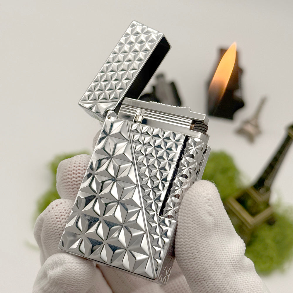 The famous S.T. Dupont Ligne 2 model, a monolithic metal with a delicate guilloche surface and have a matte and polished finish. The iconic S.T. Dupont lighter with the famous crystal clear ring of the lighter cap. Discerning style meets innovative technique to create a range of modern classics.
