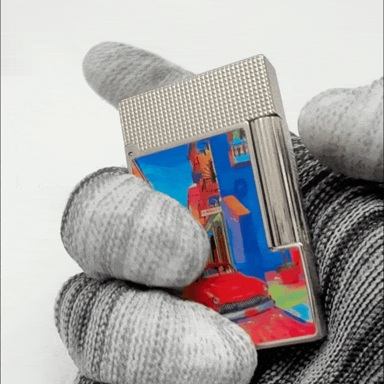 Inspired by the vibrant streets of Cuba’s capital, this single-flame Ligne 2 lighter features a platinum microdiamond head with a Havana-inspired motif and the signature “cling” sound that defines S.T. Dupont. Ignite your cigar with refined precision and transport yourself to Havana’s colorful ambiance.