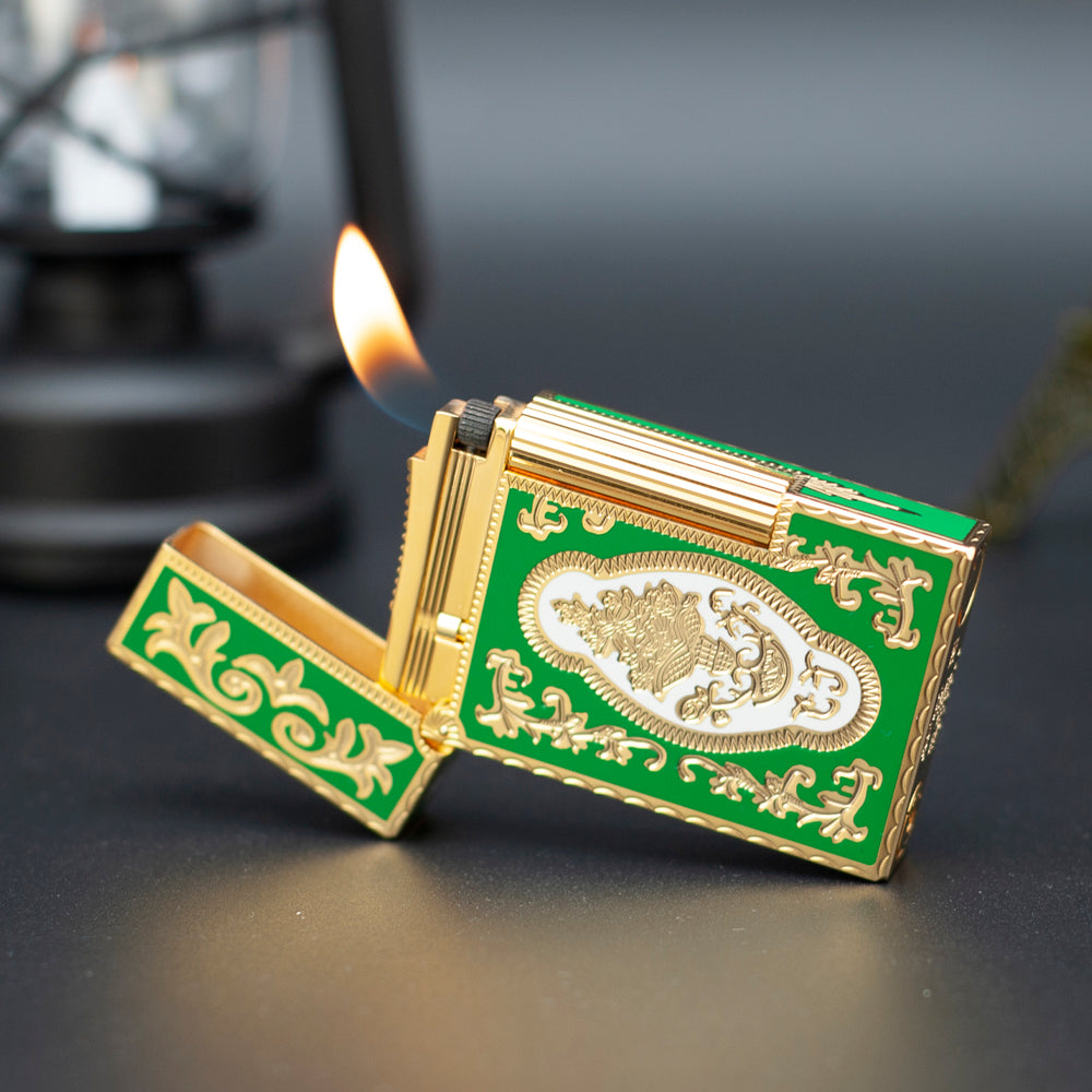 Experience Parisian elegance with the S.T. Dupont lighter Ligne 2 Firework Green Enamel. Featuring vibrant green lacquer enriched with gold plated Baroque engravings, this luxury lighter captures the brilliance of fireworks in timeless design. Its refined floral motif symbolizes prosperity and artistry, while the Ligne 2 craftsmanship ensures both functionality and collectible value. A true statement piece for those who appreciate luxury lighters and French heritage.