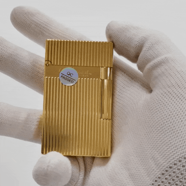 Boldly light up your cigarettes with the ST DUPONT Vertical Stripes Cigarette Lighter #002 Gold. Its elegant design boasts vertical stripes and a sleek gold finish, adding a touch of sophistication to your smoking experience. Be bold, take risks, and stand out from the crowd with this luxurious lighter.